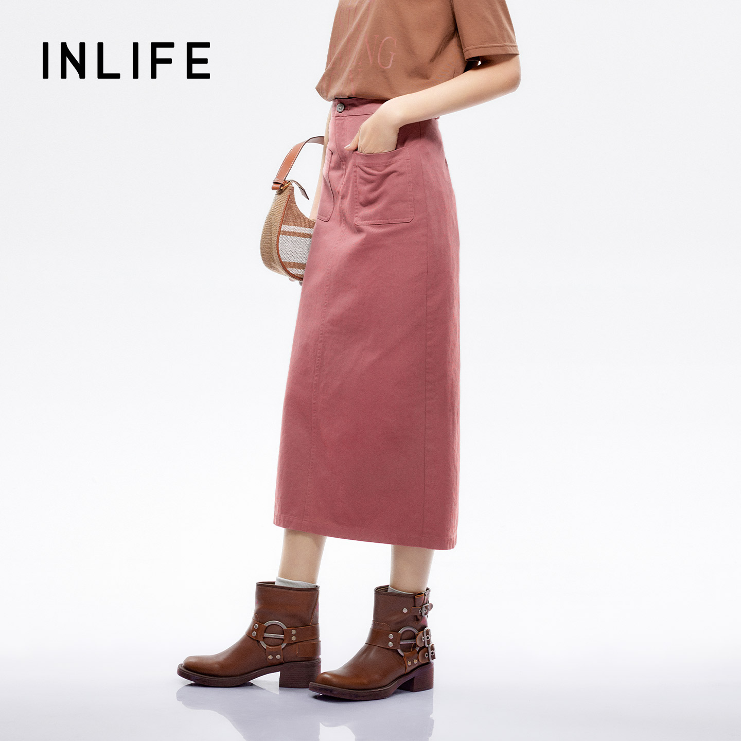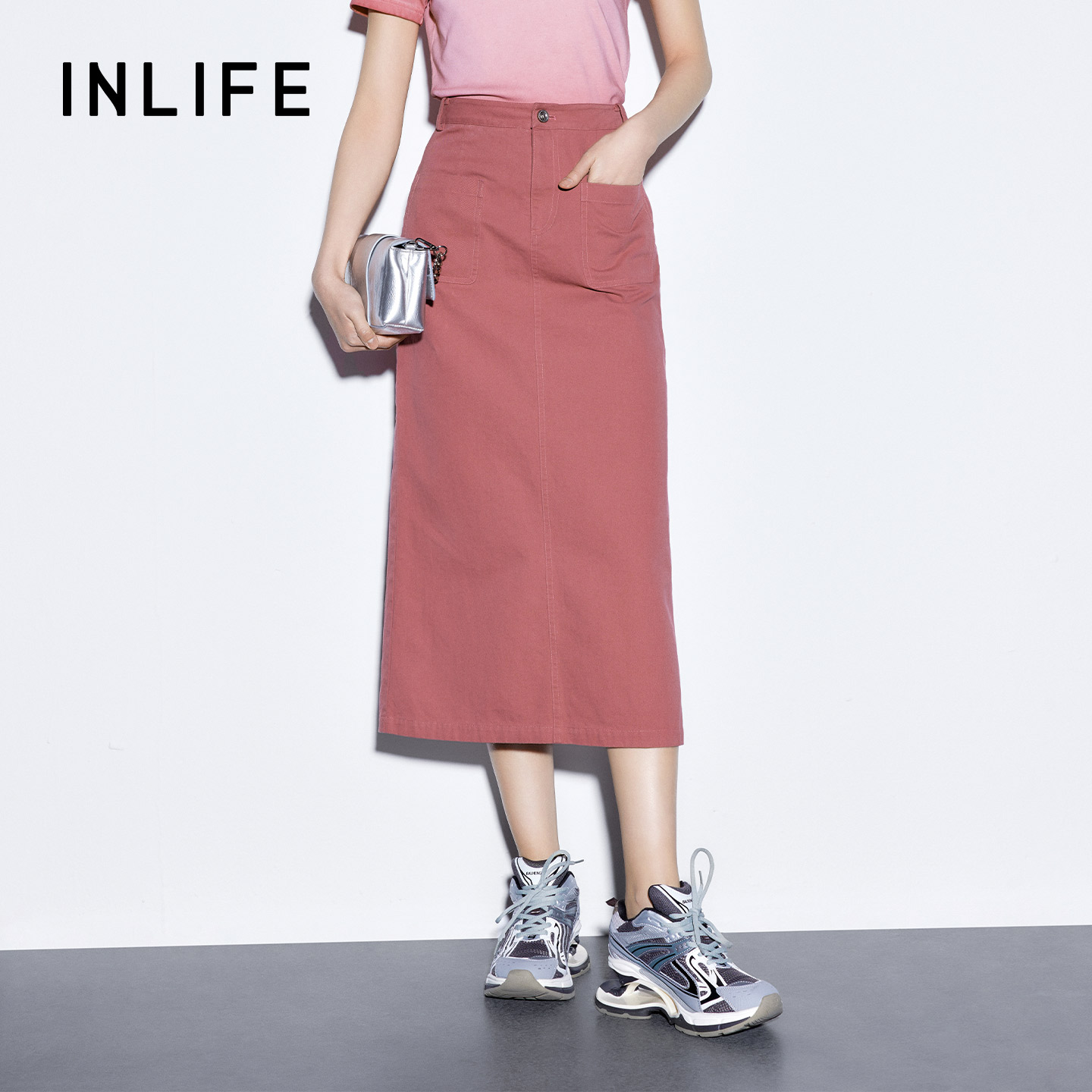 伊纳芙美式直筒牛仔半身裙女2025夏新款气质高腰显瘦中长款包臀裙
