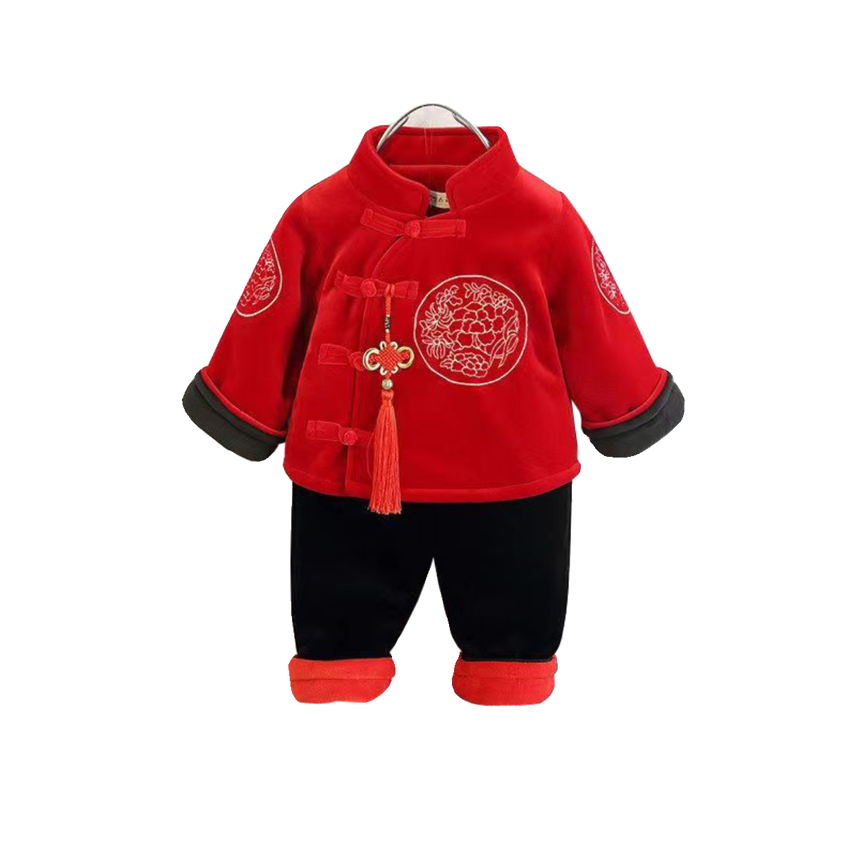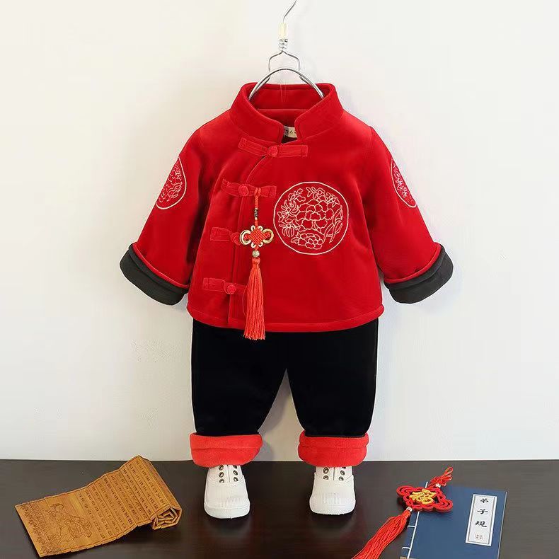 儿童唐装男童套装冬装女宝棉衣两件套拜年服中国风新年装加厚礼服