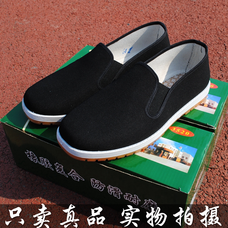 老北京黑布鞋休闲鞋男父亲老人鞋春秋男鞋懒人圆口布鞋3520正品鞋