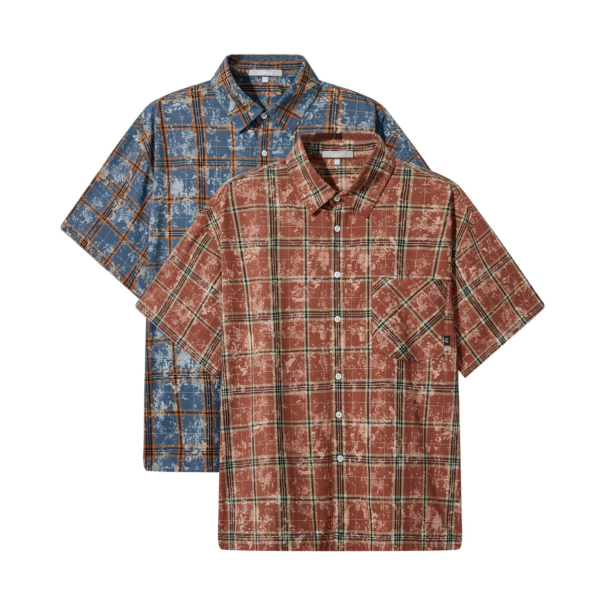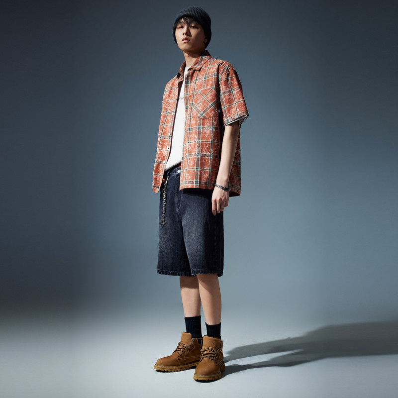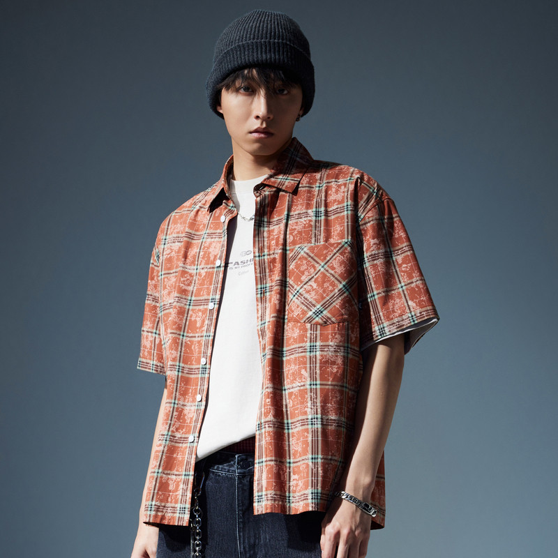 【复古洗水】卡宾男装特色格子印花衬衫水洗短袖潮牌外套上衣衬衣