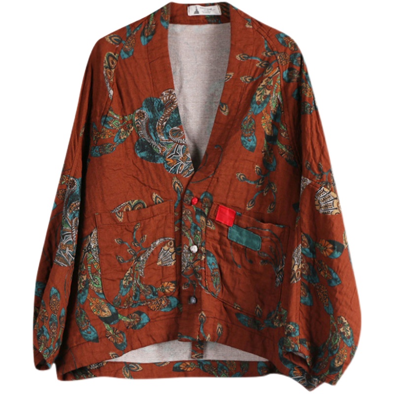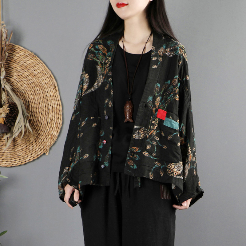 民族风文艺范复古棉麻上衣女春秋中国风女装长袖外搭开衫薄款外套
