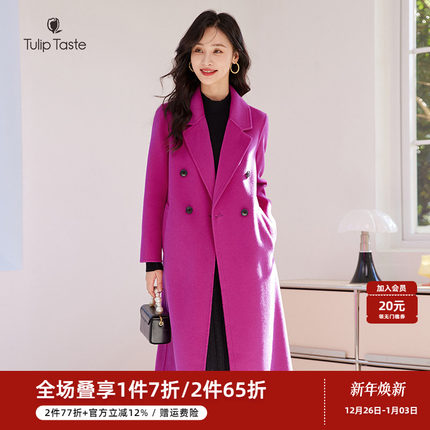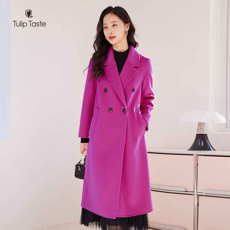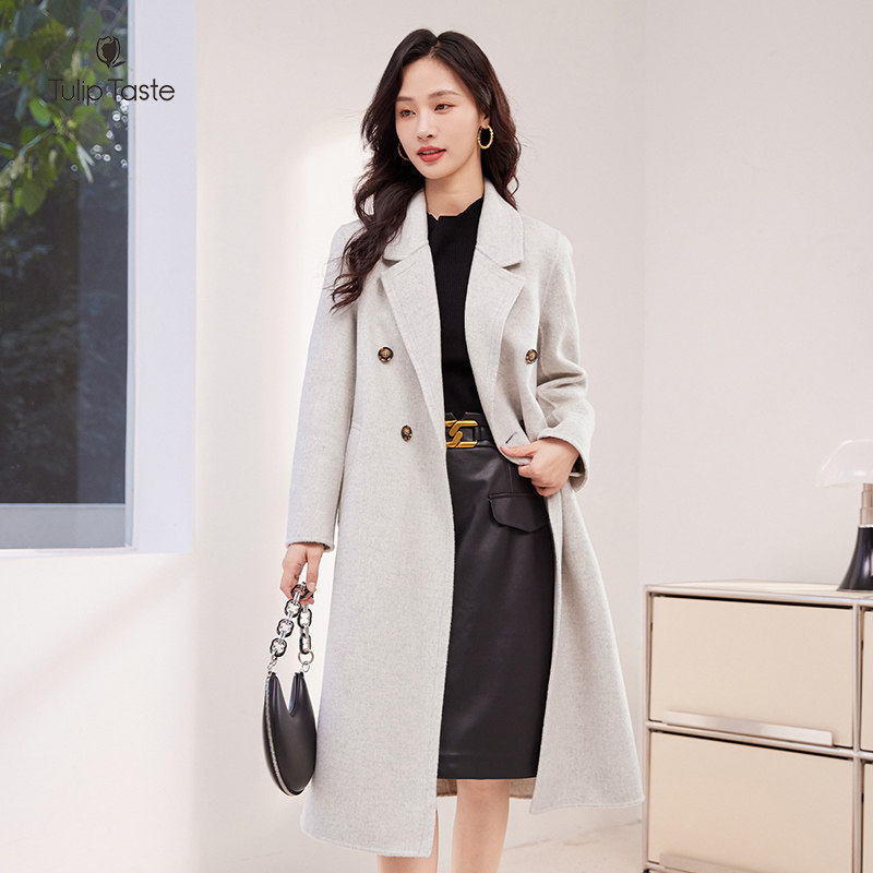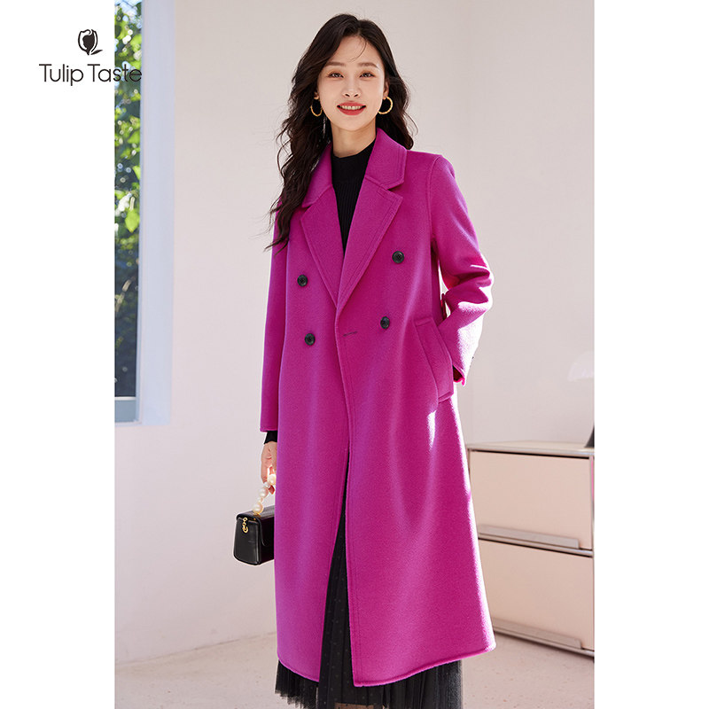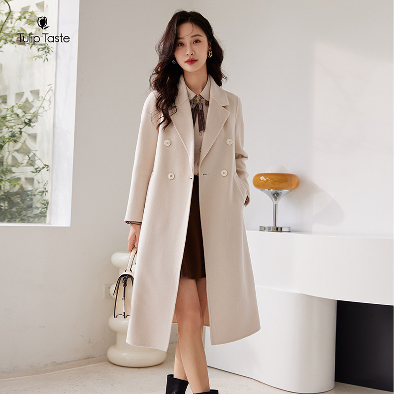 郁香菲双面呢羊毛大衣女中长款秋冬通勤修身双排扣西装领毛呢外套
