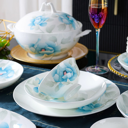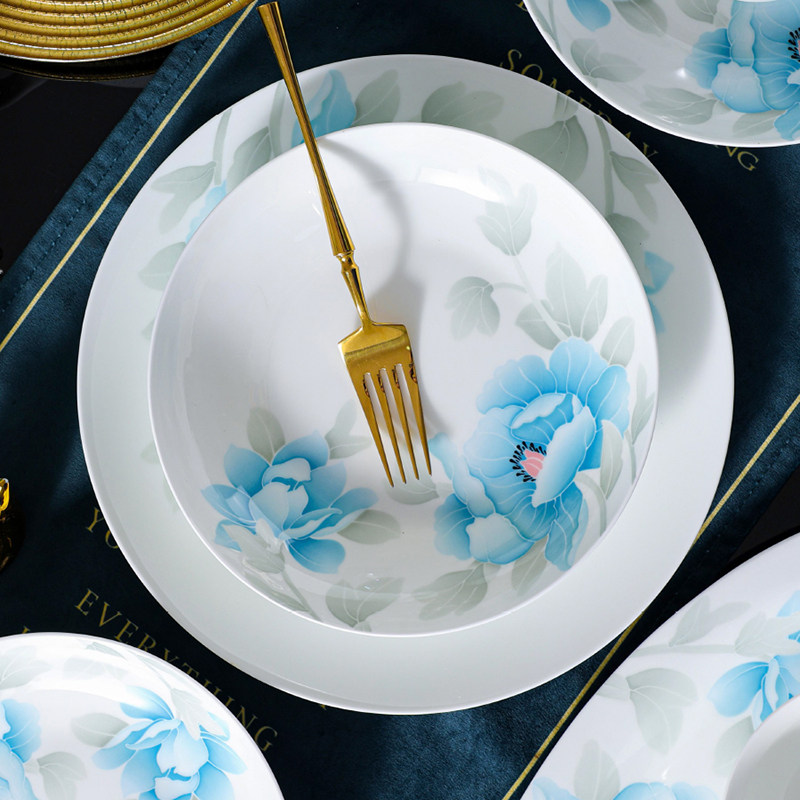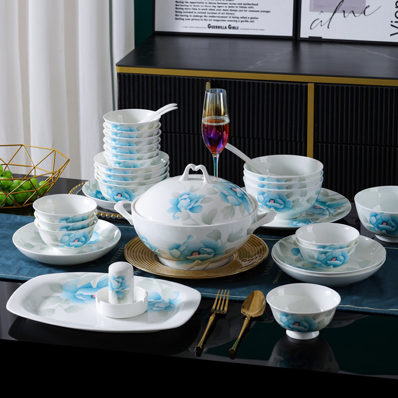 醴陵釉下五彩高档家用陶瓷碗碟组合中式餐具套装骨瓷面碗盘饭碗筷