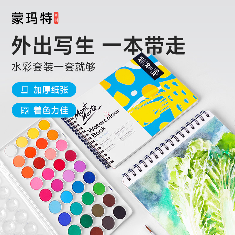 蒙玛特水彩本16k手绘本a3水彩纸8k画纸写生本水溶彩铅本活页画本水粉本画画纸