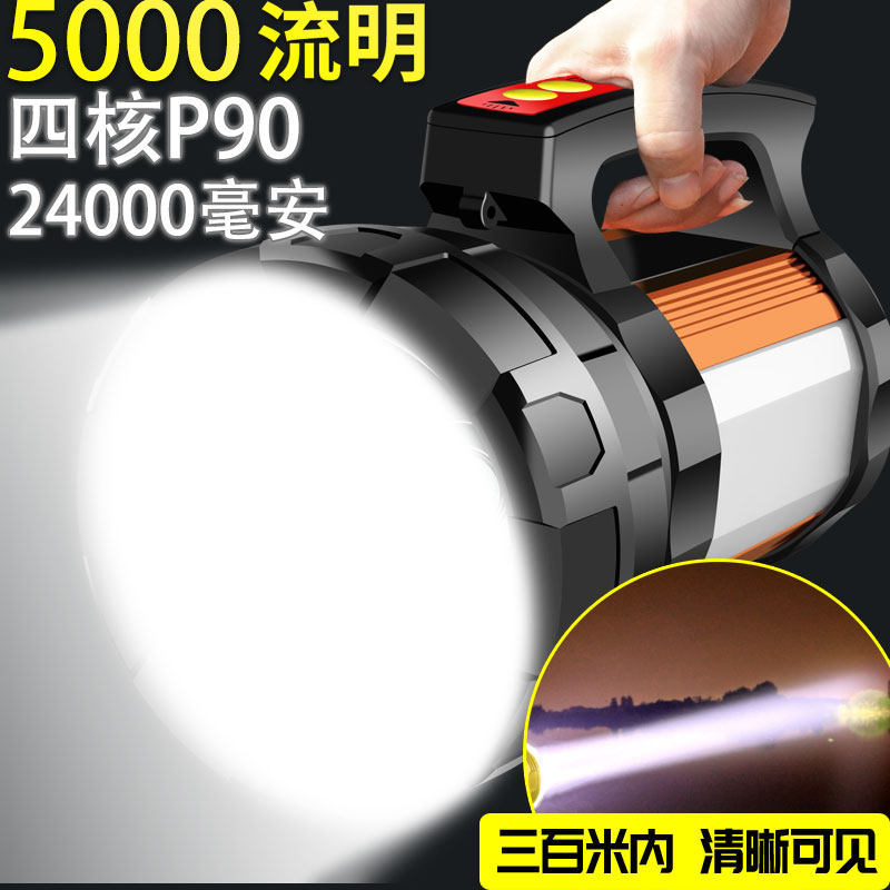 手提灯强光充电超亮大功率手电筒led远射户外防水巡逻疝气探照灯