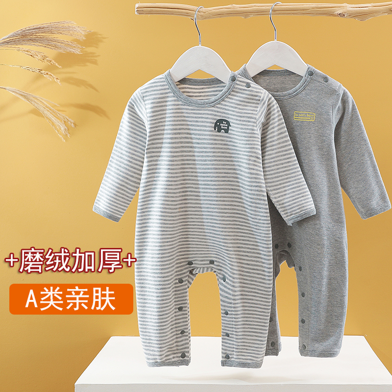 新生儿纯棉长袖连体衣男女童无骨加厚保暖家居服宝宝爬服哈衣睡衣