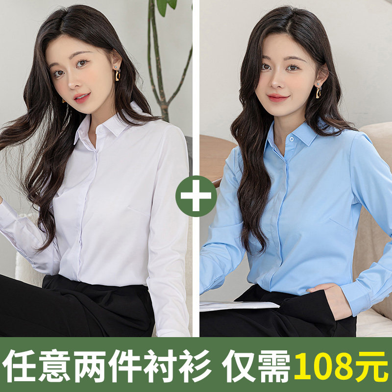 职业正装长袖弹力白色女士衬衫