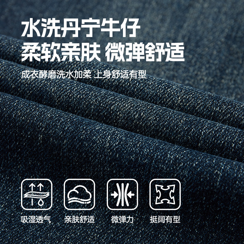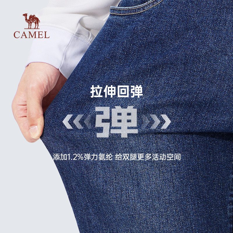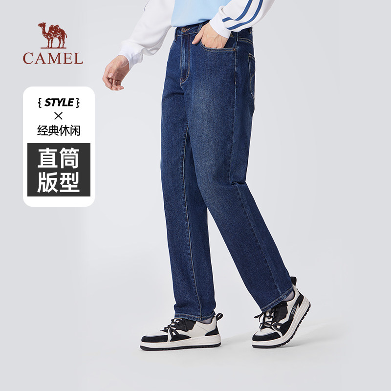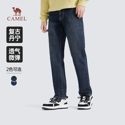 骆驼男装直筒牛仔裤男士2025夏季水洗复古舒适弹力休闲长裤