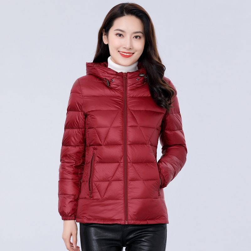 雪中飞2025年新款薄款羽绒服女连帽短款轻薄中老年外套妈妈秋冬装