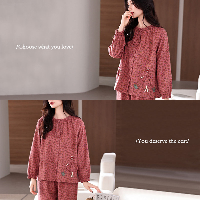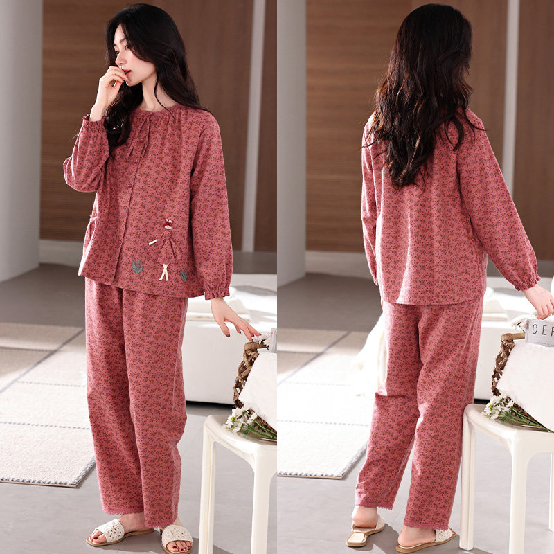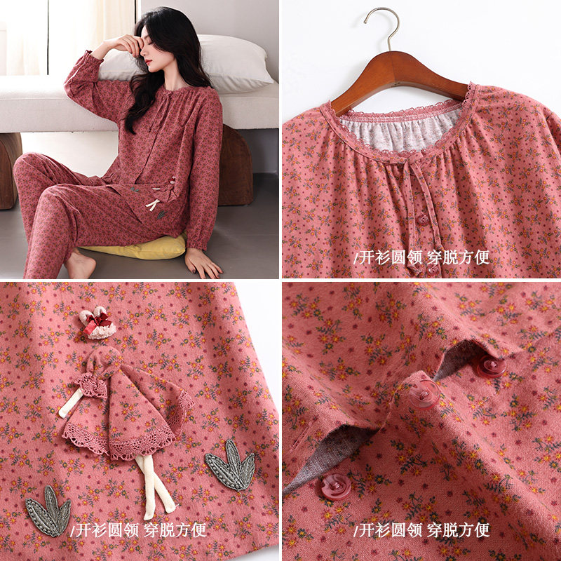 睡衣女士春秋季秋款纯棉长袖妈妈秋天全棉中年大码开衫家居服套装