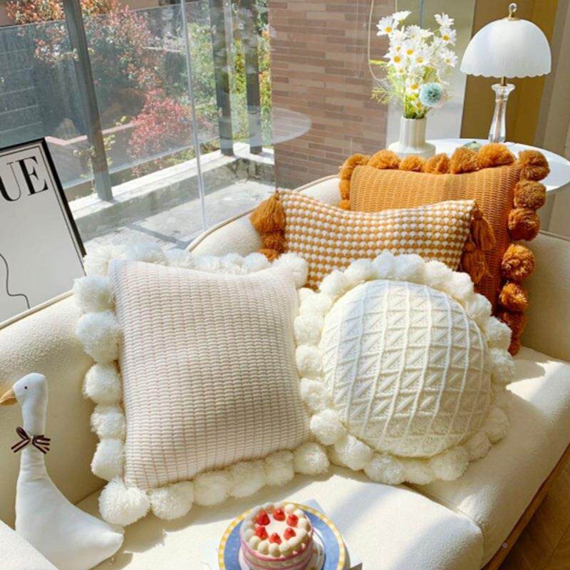 北欧纯色FS756756鸡织沙发抱靠枕ins花瓣蛋花卧室垫太阳花靠飘窗