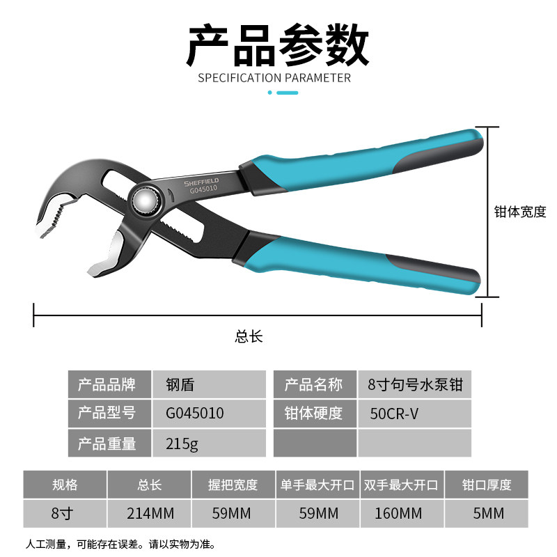 钢盾多功能水泵钳扳手万用活动大力钳水管钳子大开口万用钳子鹰嘴