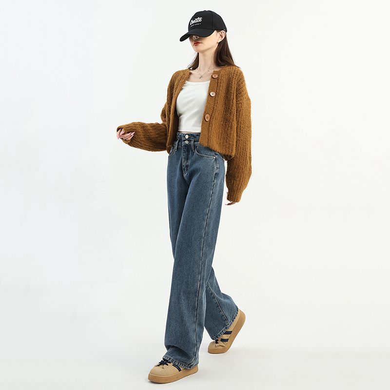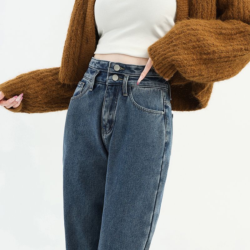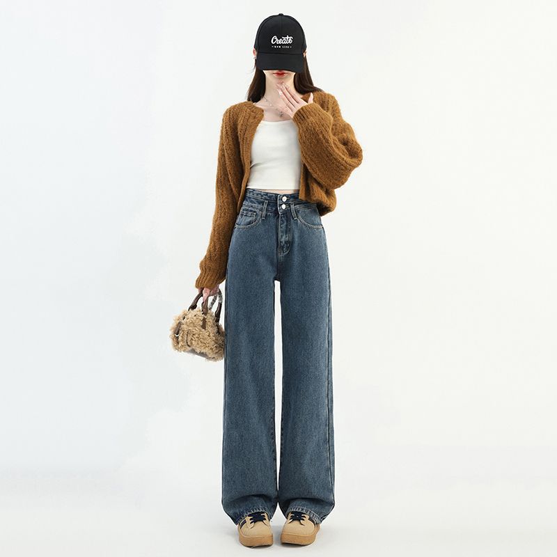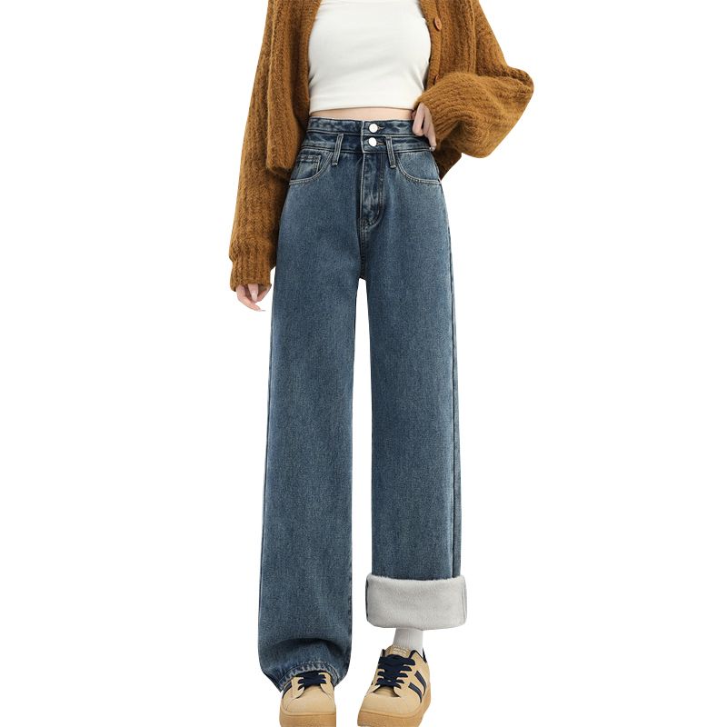直筒宽松牛仔裤女2025年秋冬季高腰阔腿加绒百搭显瘦小个子拖地裤