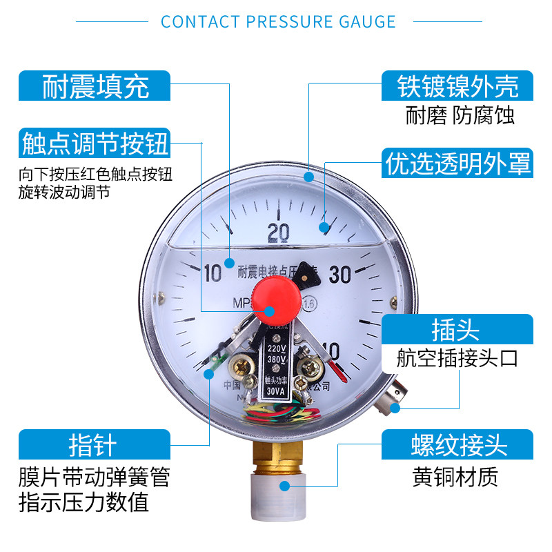 雷尔达YNXC100耐震电接点压力表磁助式220V/380V 30VA径向轴向