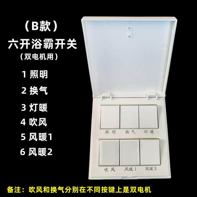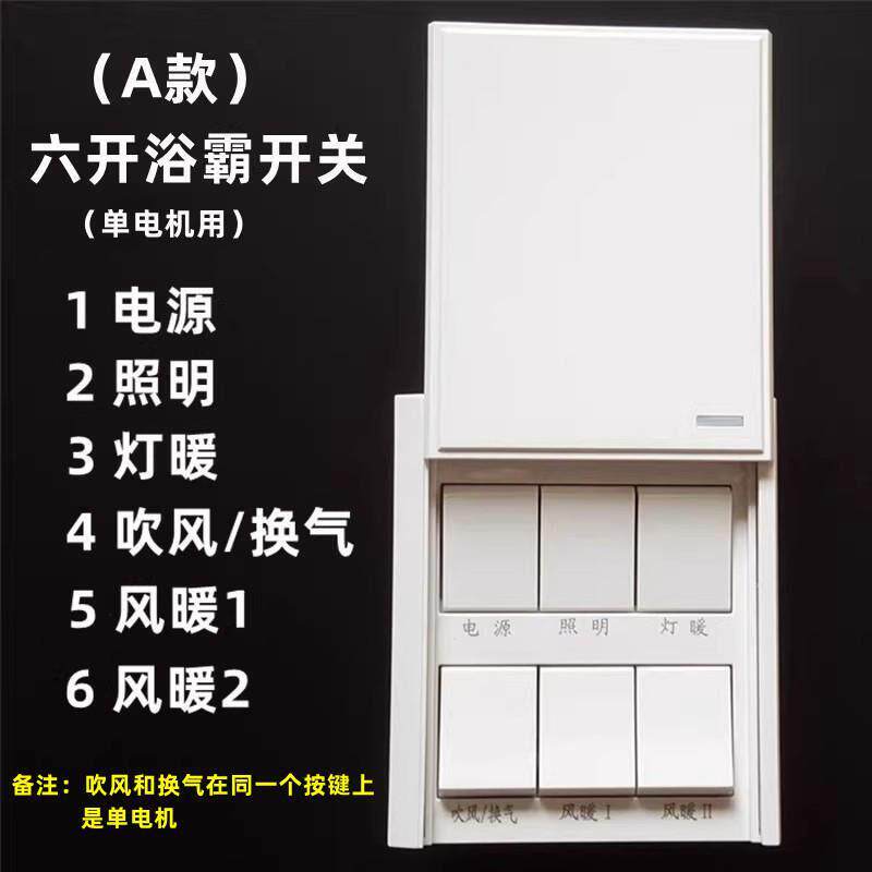 浴霸开 关六开 滑盖翻盖带防水盒6开 16A暖风机浴室法狮龙通用86
