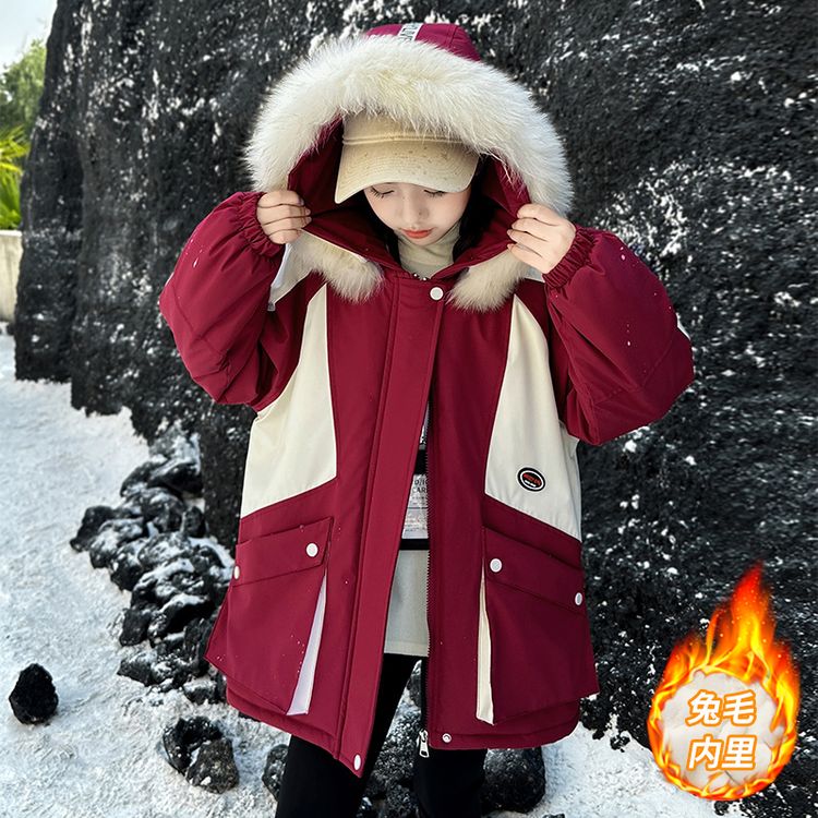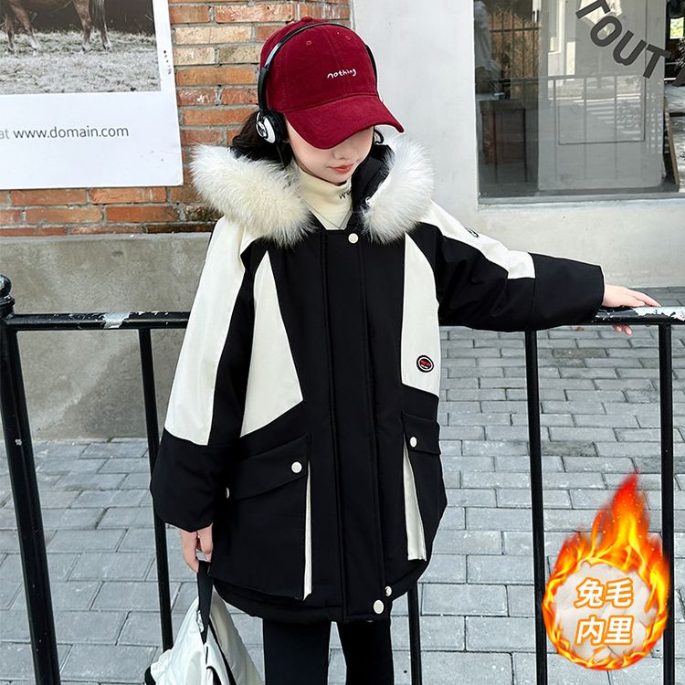 女童派克服棉衣外套加绒加厚冬装保暖2025新款中大童连帽中长款潮
