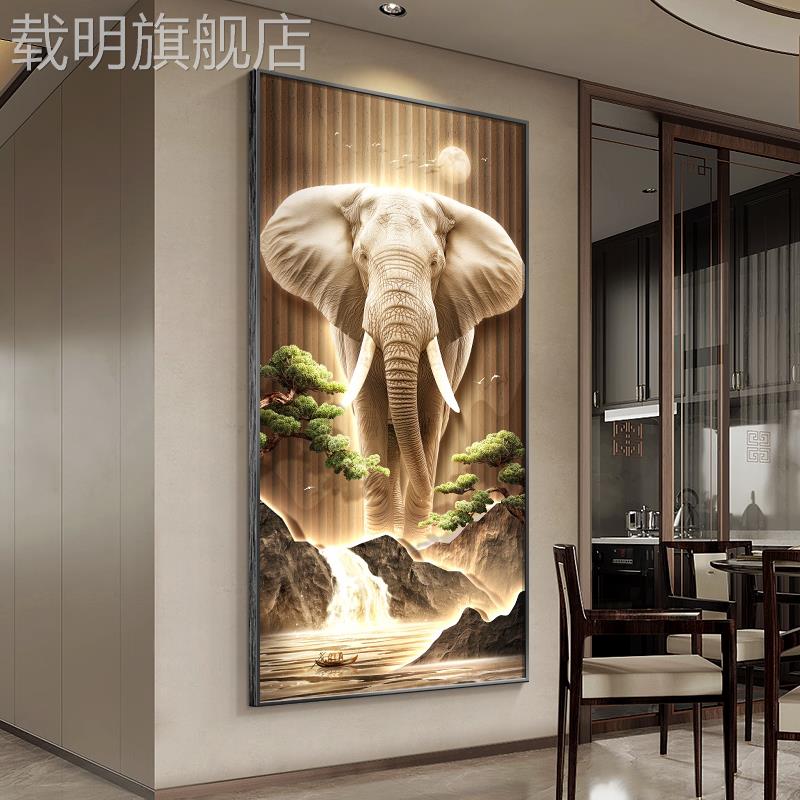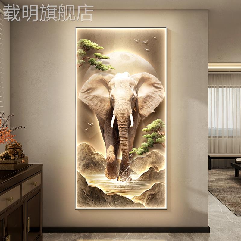 新中式玄关装饰画轻奢大象走廊过道挂画高档大气入户正对门壁画灯