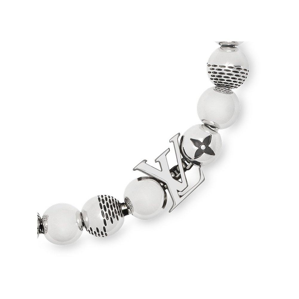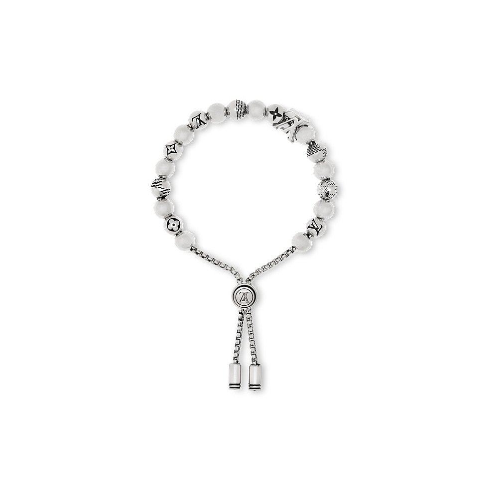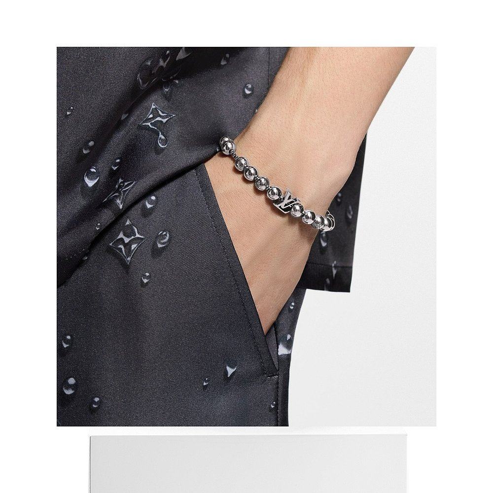 自营1h可退 欧洲直邮LV路易威登 Damier男士钯金色金属串珠手链