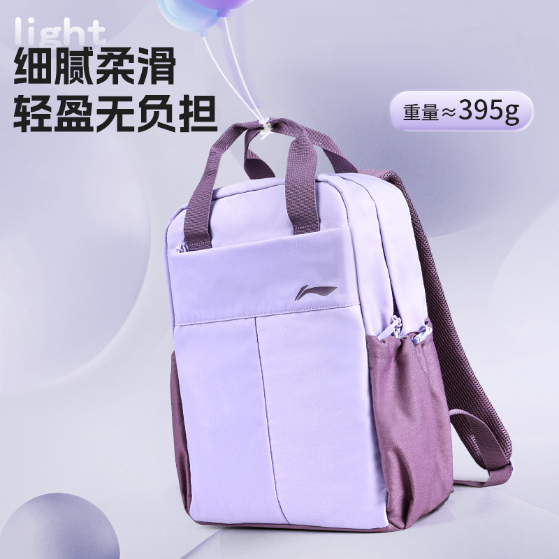 李宁双肩包学生书包2025新款女休闲中小学生帆布包运动背包旅行包