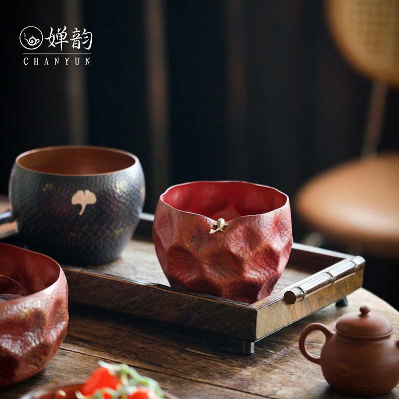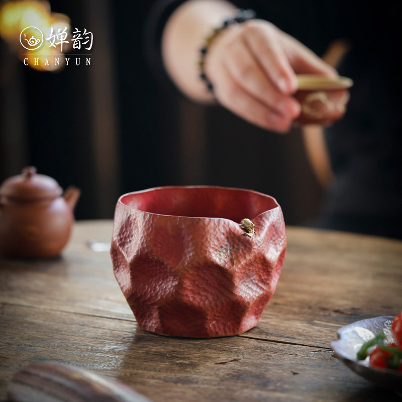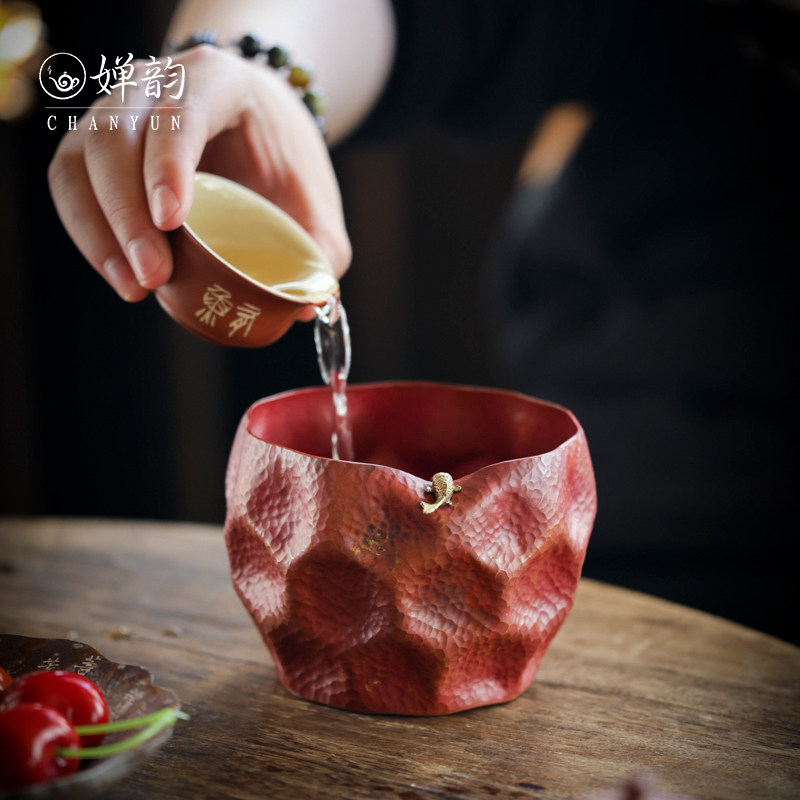 婵韵曹格紫铜狮头银杏锤纹建水茶盏茶洗不沾水茶渣桶复古茶具配件