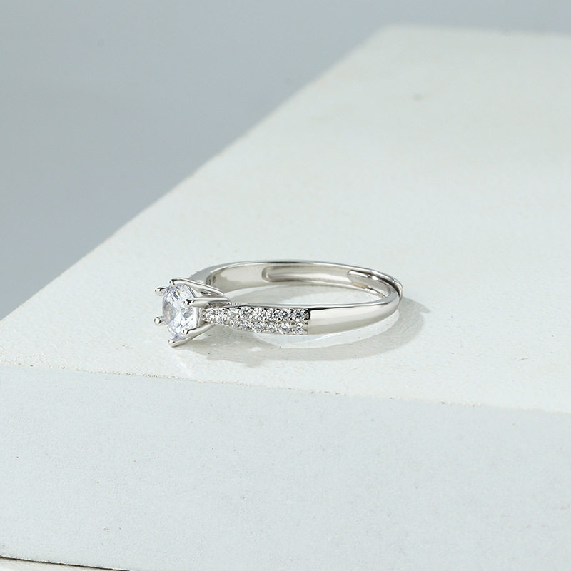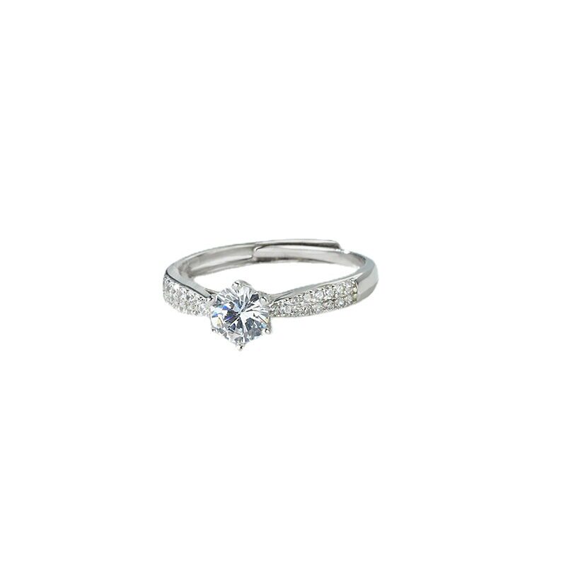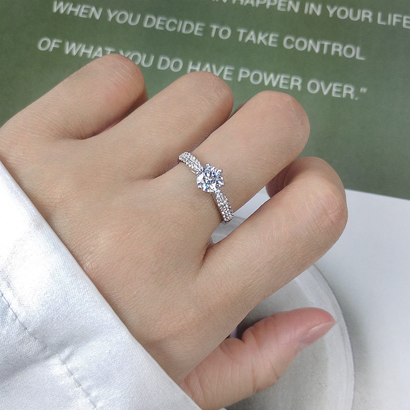 s925纯银钻戒女士一克拉六爪单钻戒指经典结婚开口婚戒手首饰礼物