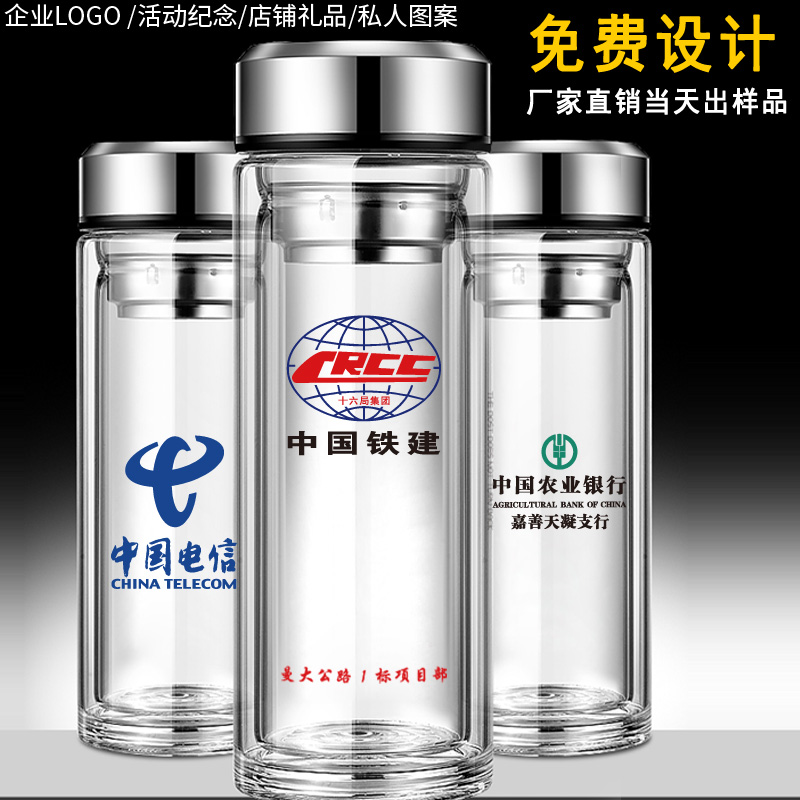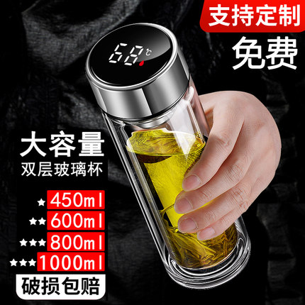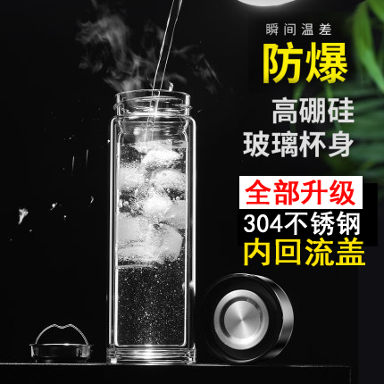 双层透明玻璃杯保温便携家用水杯加厚隔热滤网男士泡茶杯定制logo