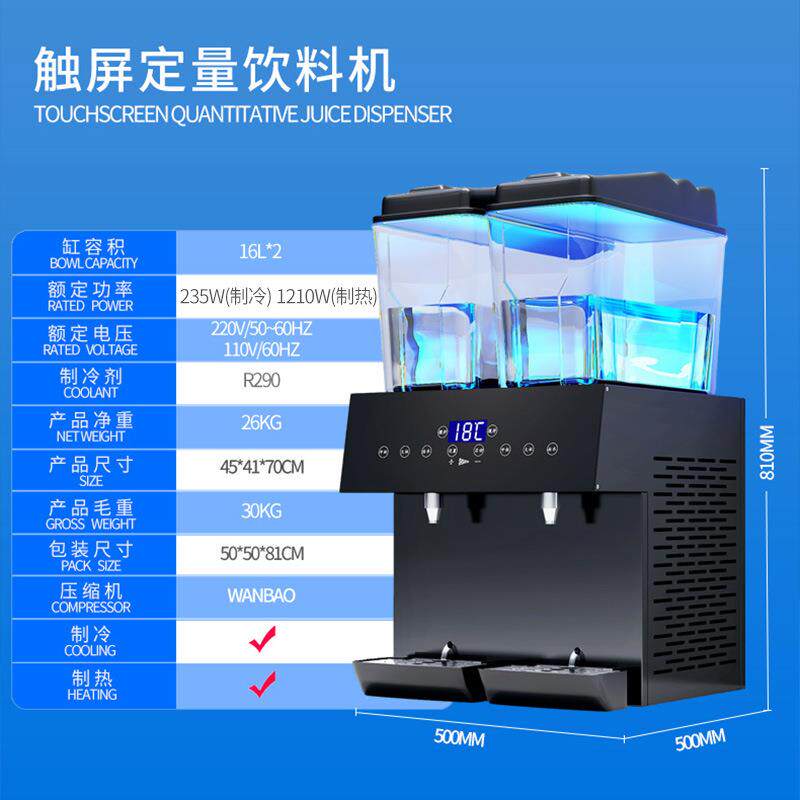 双缸定量饮料机商用智能出果粒冷饮机冷热双温果汁机