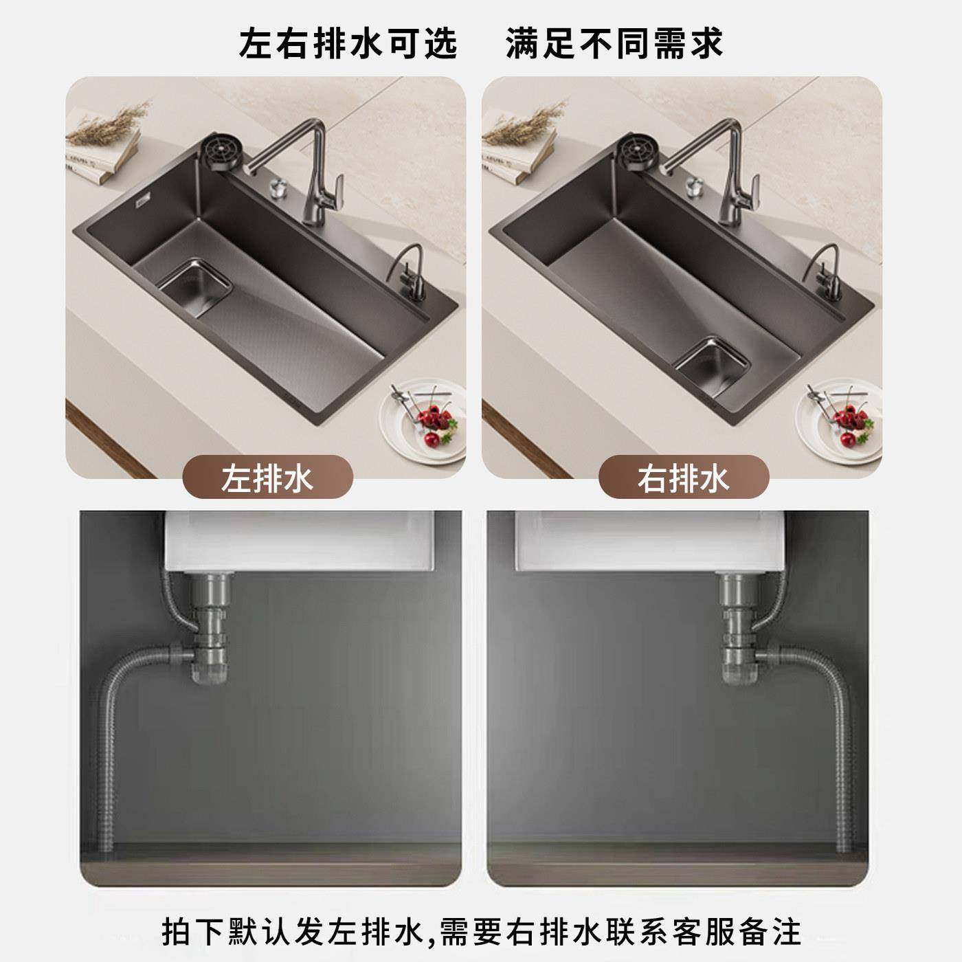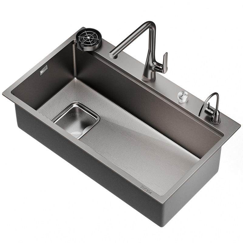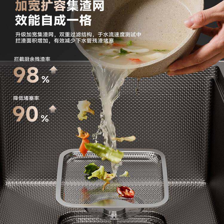 欧琳纳米水槽SUS304不锈钢大单槽厨房集渣洗碗槽9050左下水洗菜盆