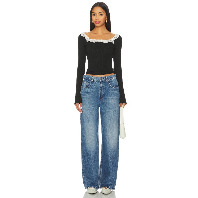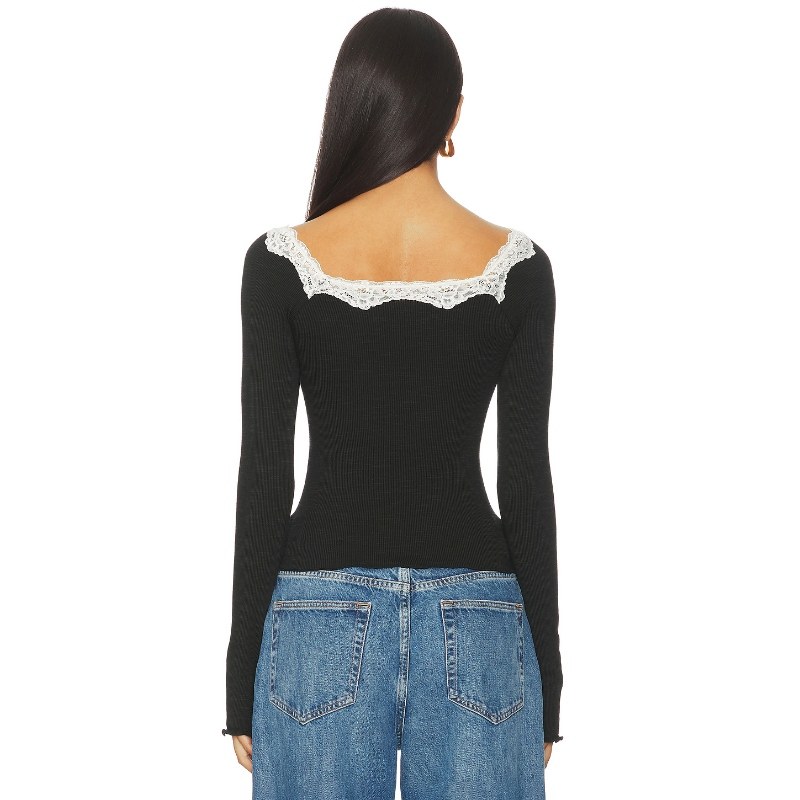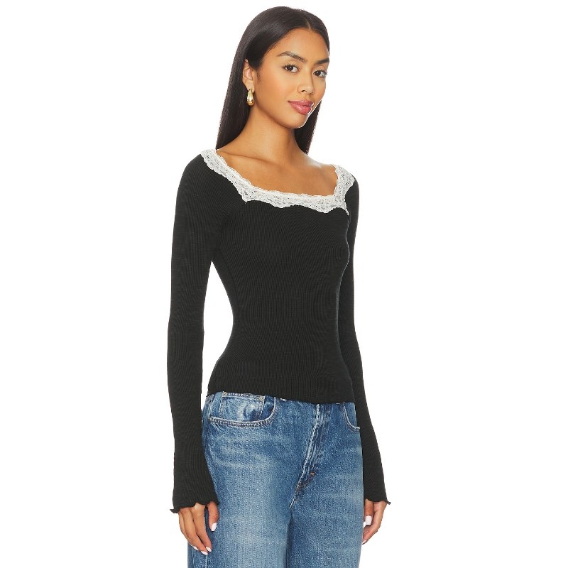 [冬季内搭]Free People 长袖款上衣黑色蕾丝饰边性感上装REVOLVE