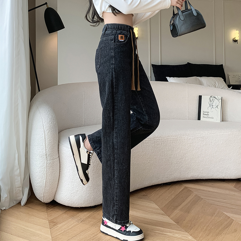 黑色宽松直筒阔腿牛仔拖地长裤女