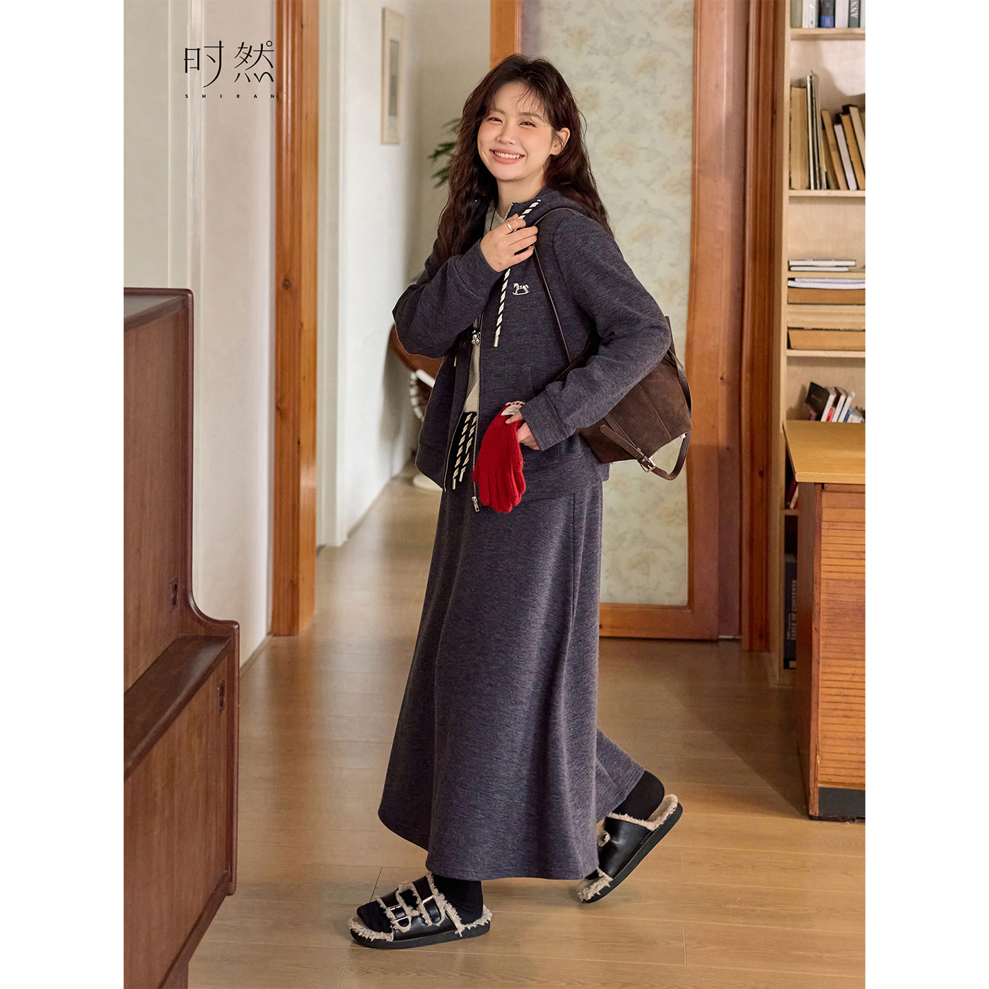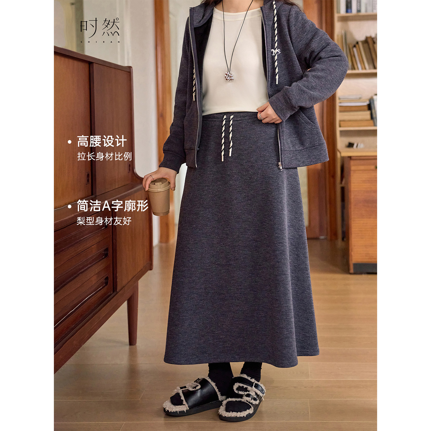 时然大码微胖MM26年冬新款松紧腰A字半裙垂感伞裙休闲微胖半身裙