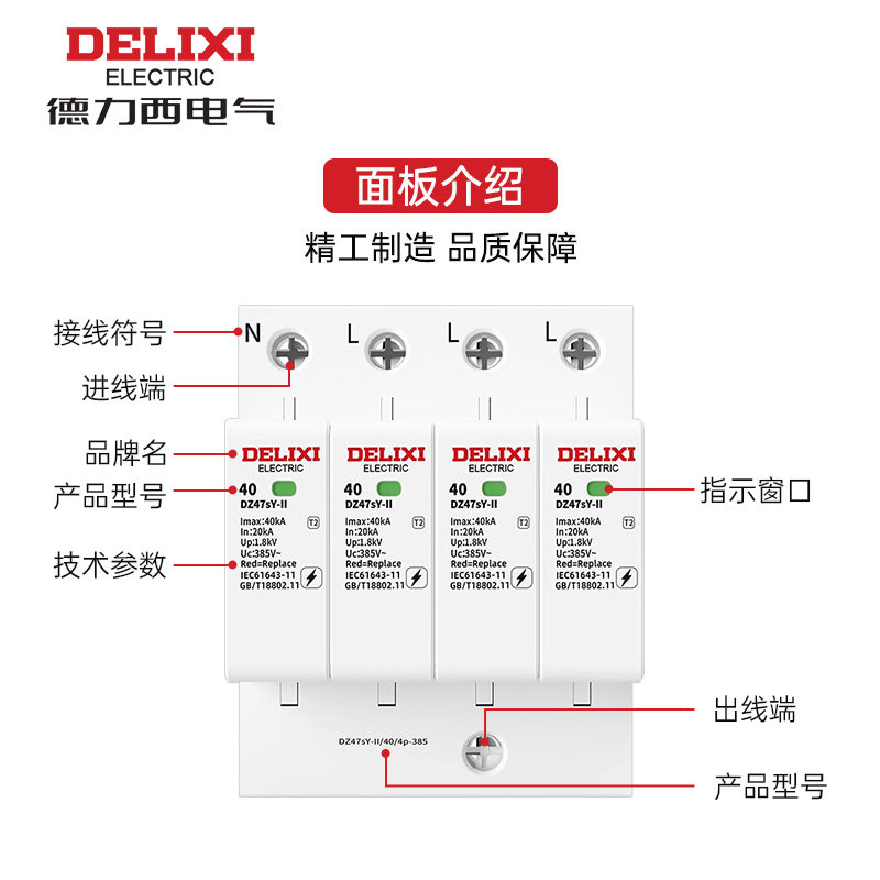 德力西DZ47sY-II浪涌保护器防雷击20kA65kA80kA1p2p3p275V385V