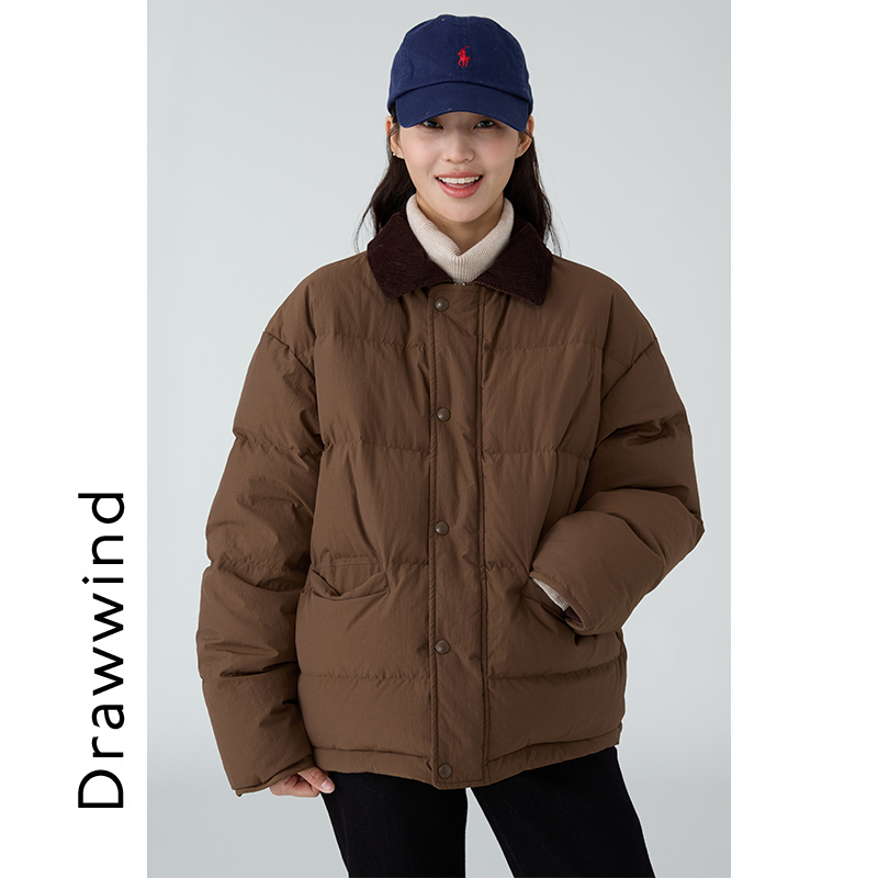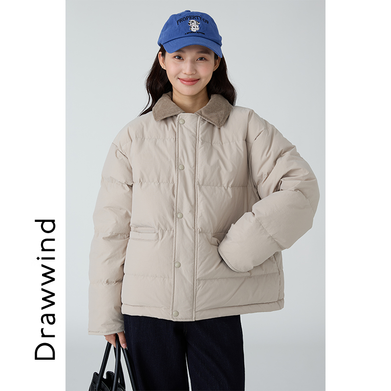 画风drawwind短款羽绒服女新款冬季小个子保暖翻领面包服外套
