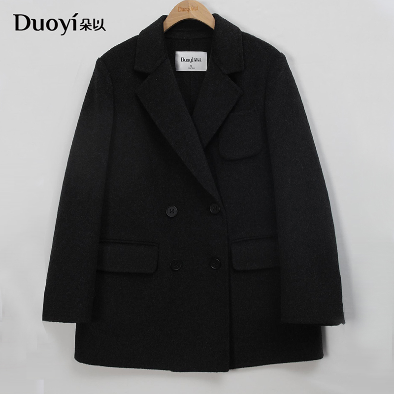 朵以2025冬新款翻领口袋刺绣双面呢大衣显瘦通勤时尚保暖毛呢外套