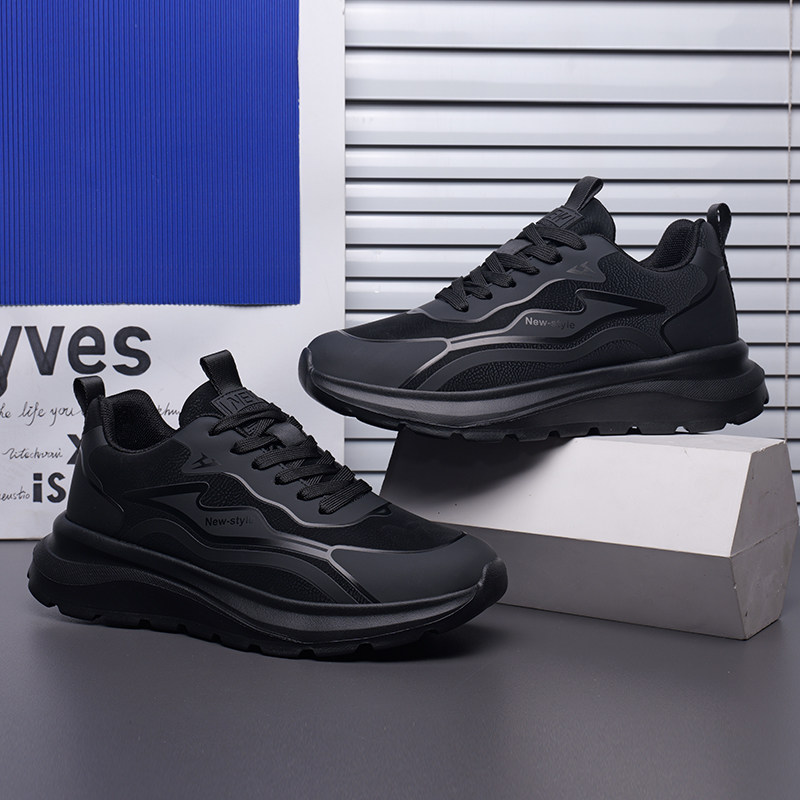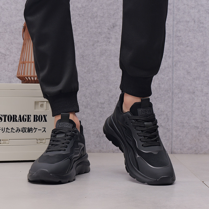 男鞋2025新款秋冬季加棉男士英伦风黑色休闲皮鞋男款厚底运动棉鞋