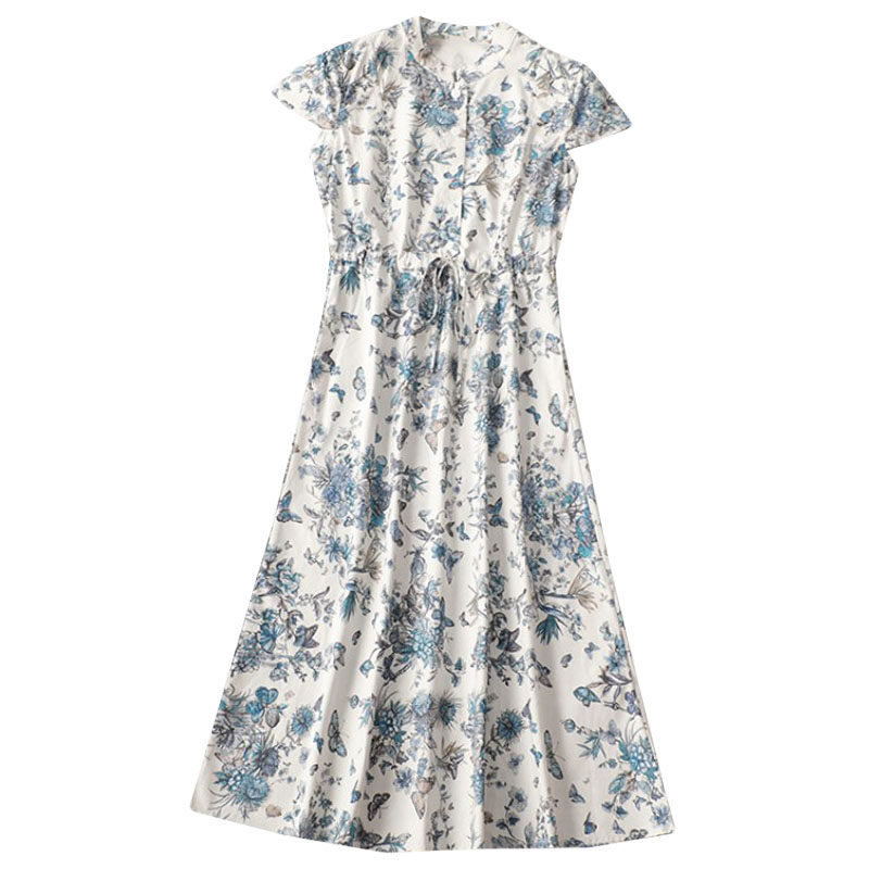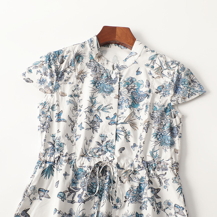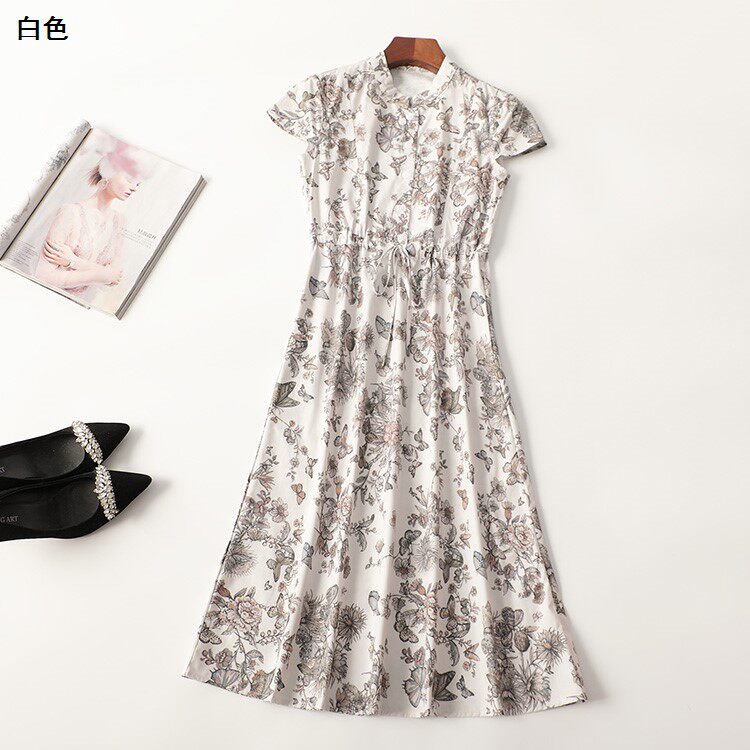 411175南油高档轻奢女装欧美大气质夏加长款立领短袖印花连衣裙