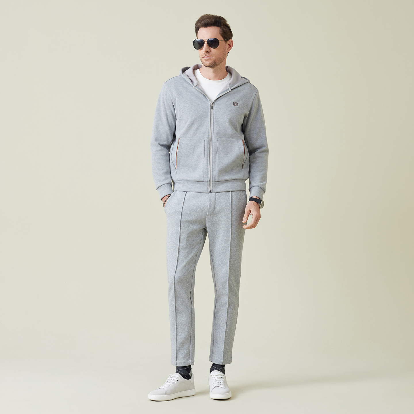 雷迪波尔男装夹克外套2025秋季新款连帽休闲舒适绵羊毛纯色上衣男