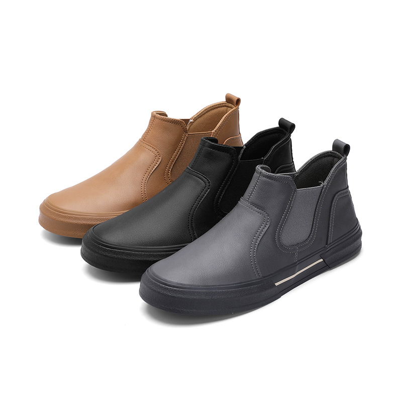 秋季新款男鞋潮流百搭复古休闲皮鞋男士高帮英伦风一脚蹬皮靴子男