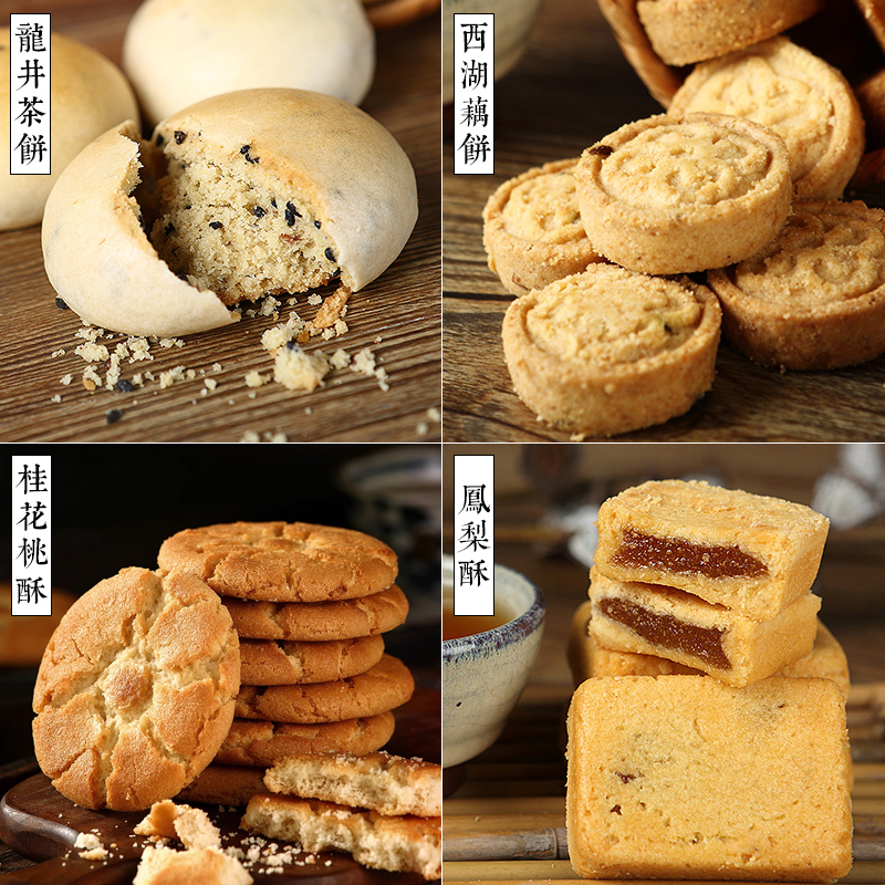 凤梨酥杭州特产龙井茶饼西湖藕饼老式糕点桂花桃酥牛皮纸包伴手礼