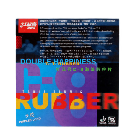 红双喜DHS 乒乓球拍胶皮 C8 长胶 套胶带海绵黑红防守削球