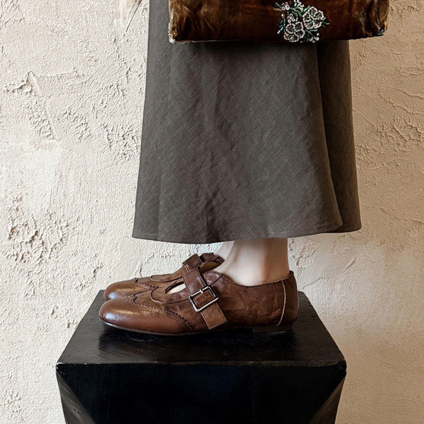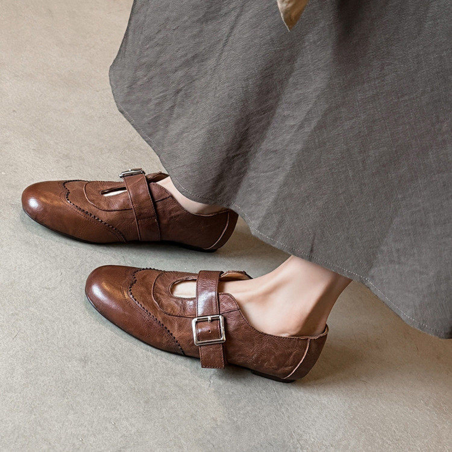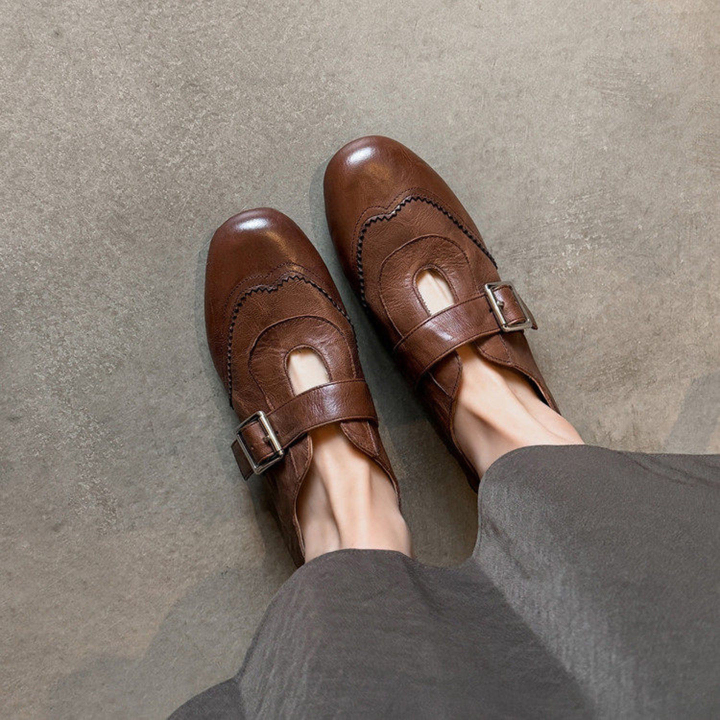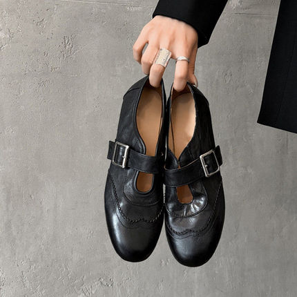 牛皮版~英伦风手工雕花乐福鞋女平底真皮浅口单鞋通勤百搭小皮鞋