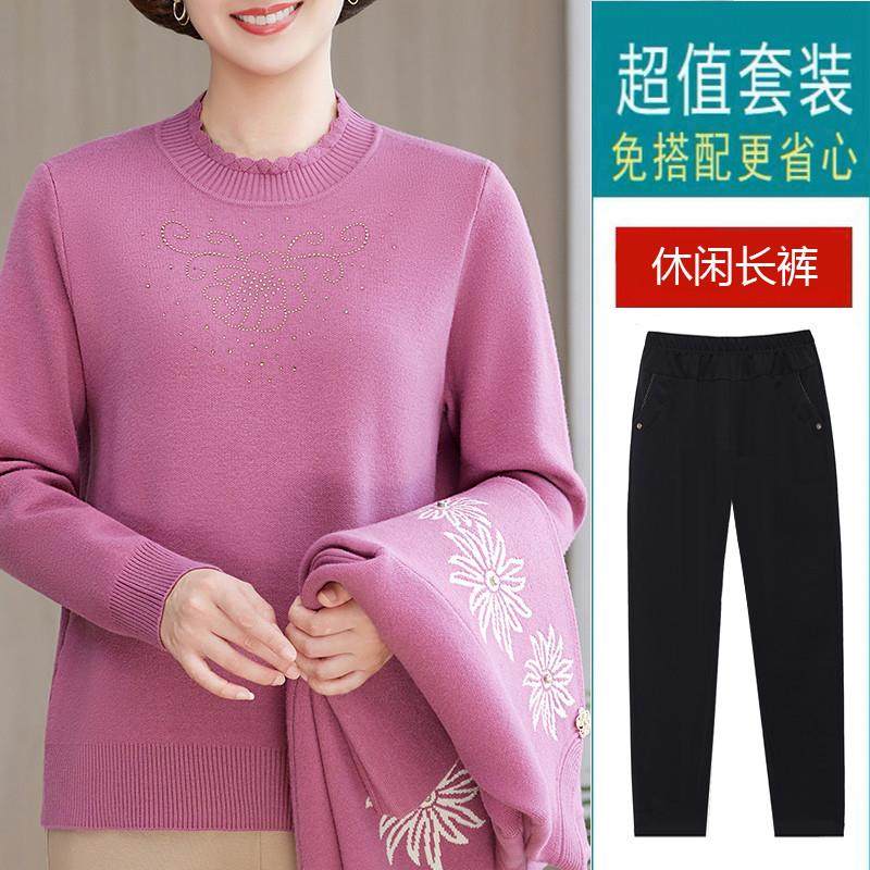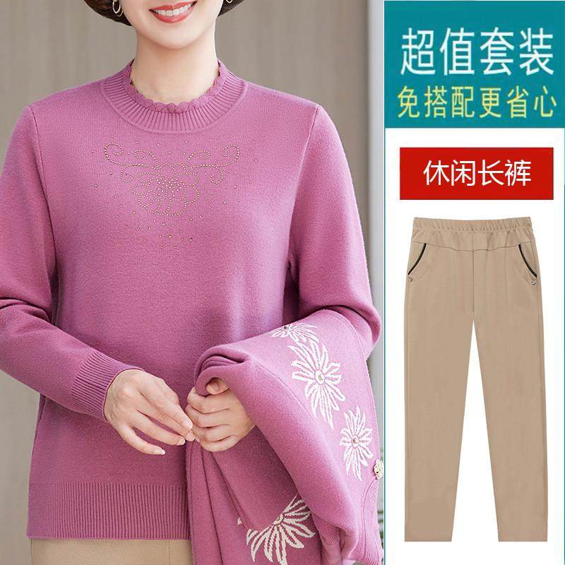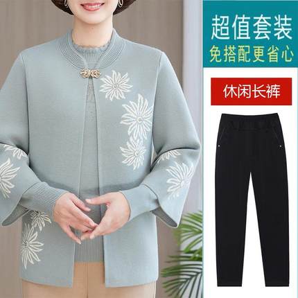 推荐中老年妈妈春秋装针织开衫外套洋气中年女春秋新款毛衣两件套