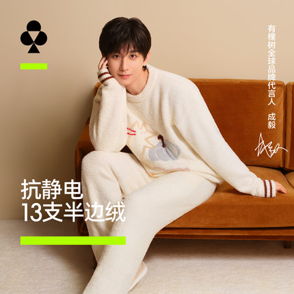【成毅同款】有棵树睡衣女款半边绒可爱加厚冬男士情侣家居服套装