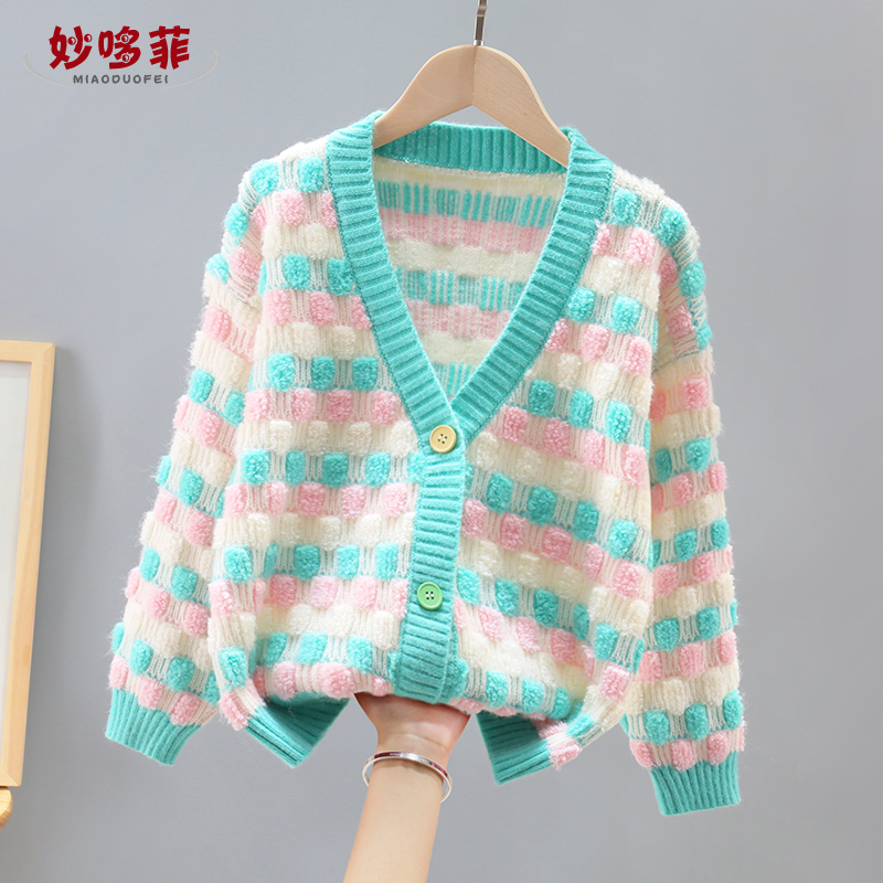女童针织开衫外套春秋款2025新款中大童女孩儿童洋气宽松毛衣春装