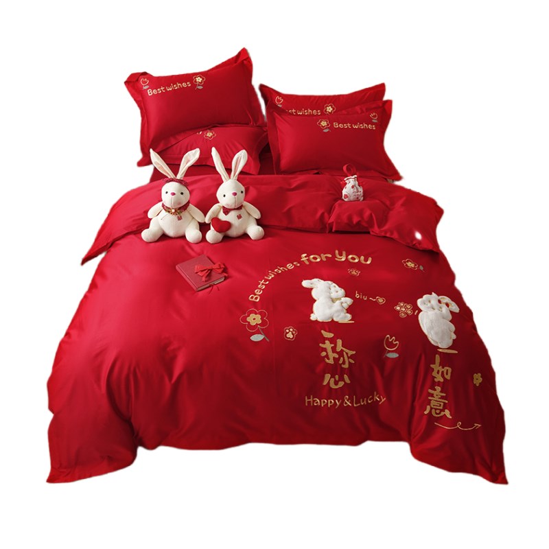 新款兔年婚庆四件套大红色结婚喜庆被套新婚婚房兔子床上用品床单