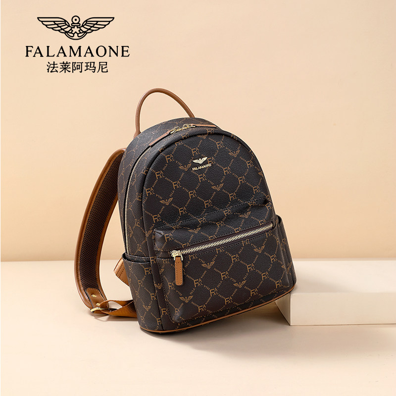 法莱阿玛尼双肩包女2025通勤大学生书包高级感大容量旅游老花背包