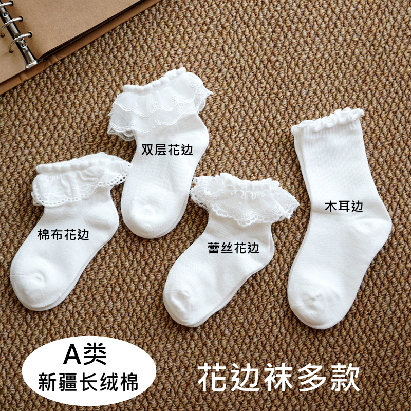 春秋儿童花边公主袜白色宝宝a类无骨网眼透气纯棉女孩女童花边袜