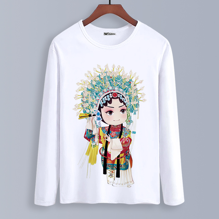 中国风T恤新款国潮国粹京剧脸谱秋季大码长袖上衣服男女装打底衫