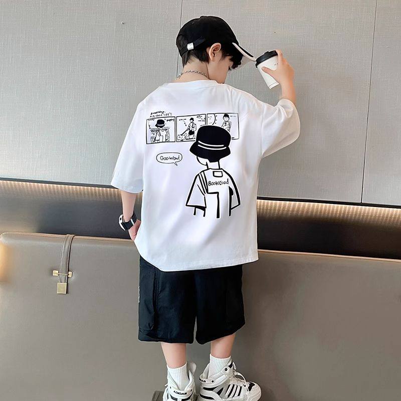 男童夏装白色短袖T恤2025新款儿童夏季半袖中大童夏款上衣宽松潮t