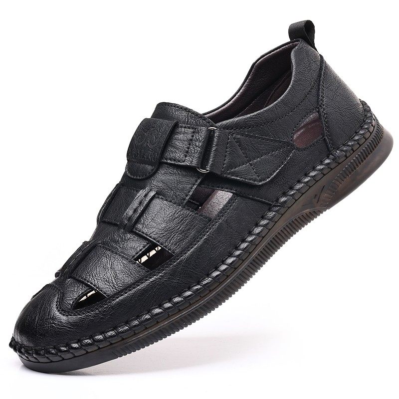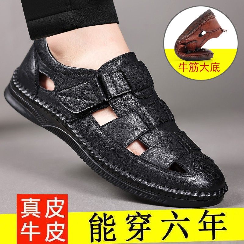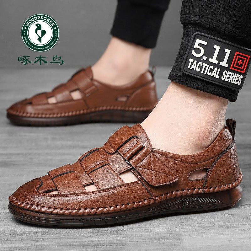 啄木鸟凉鞋男夏季新款真皮休闲皮鞋男士镂空洞洞鞋牛筋软底爸爸鞋